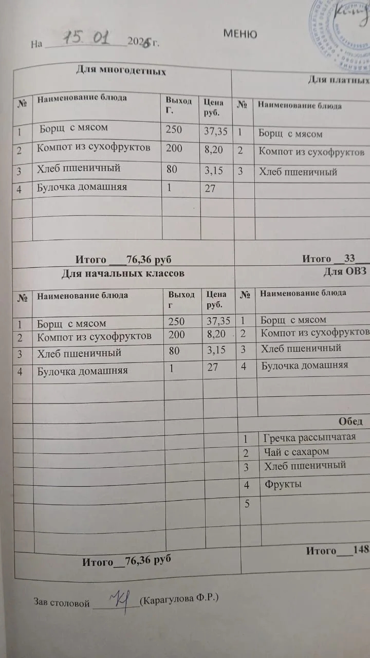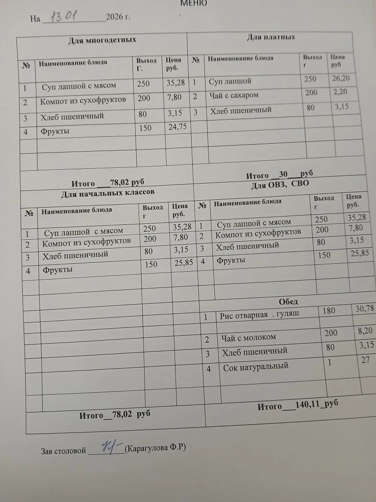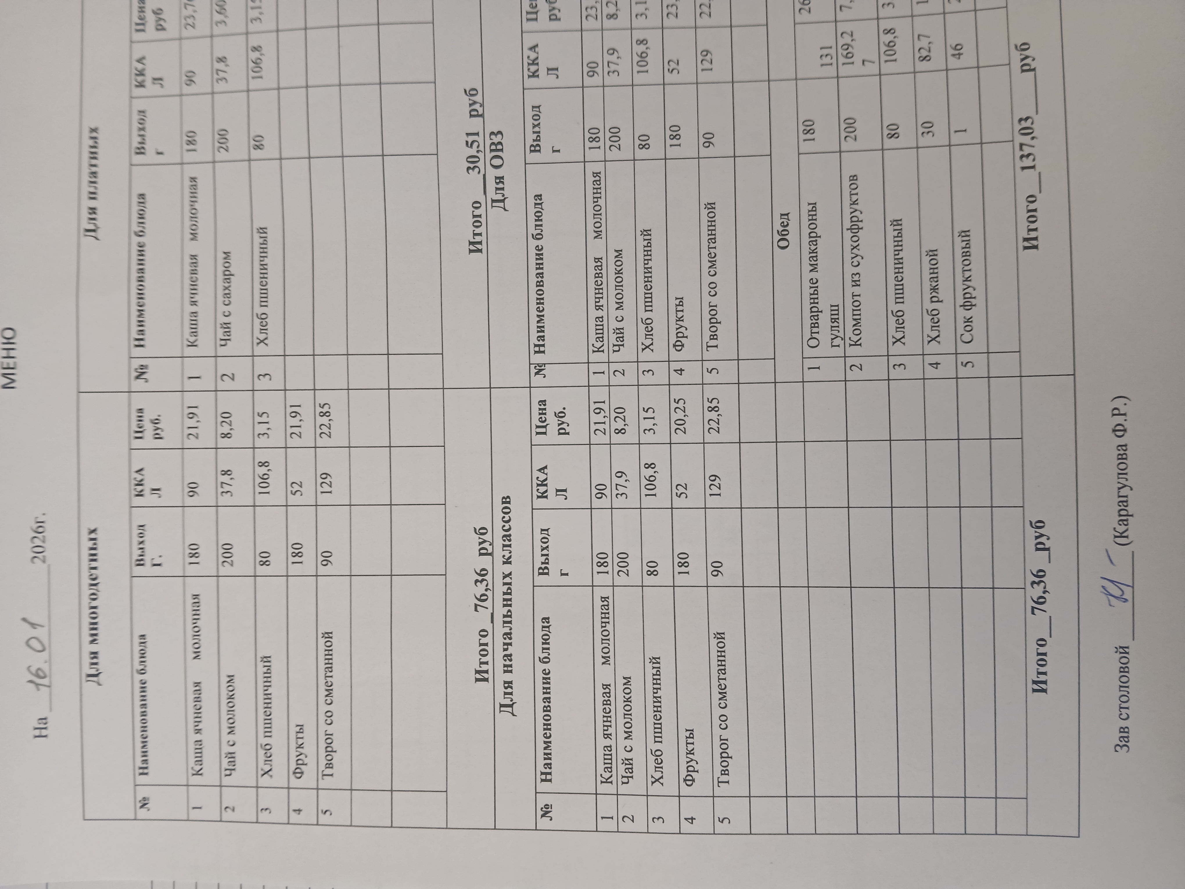 Меню детского оздоровительного лагеря 2021-2022 г.