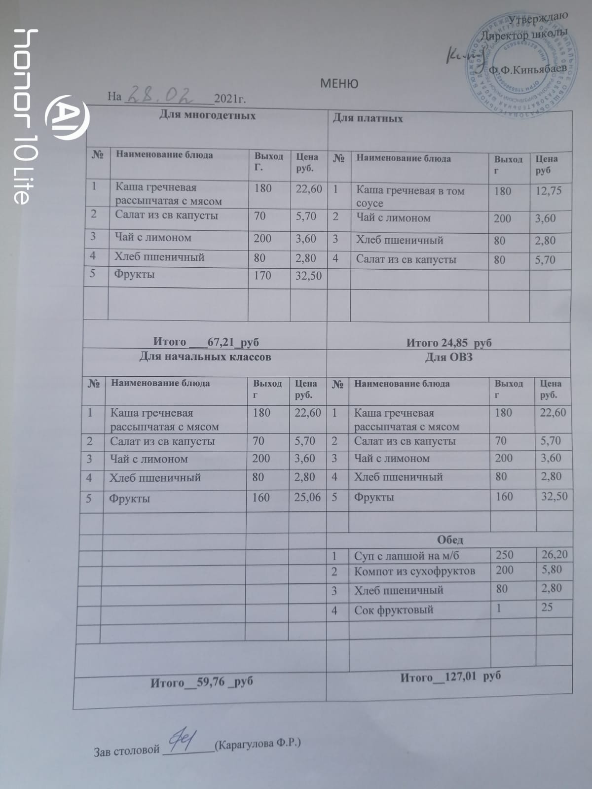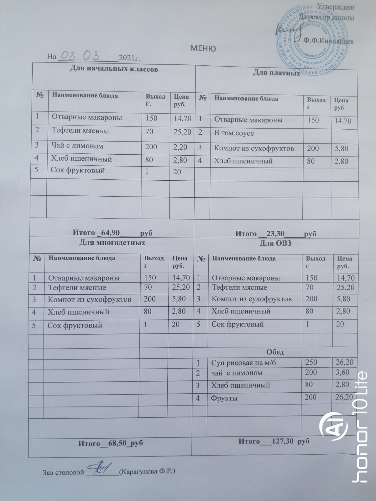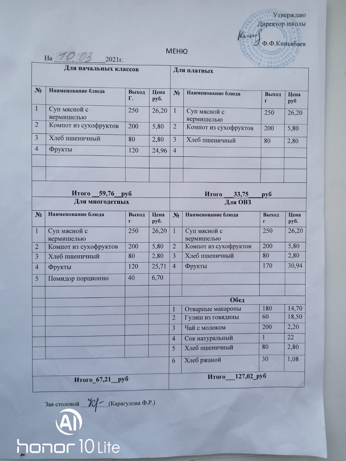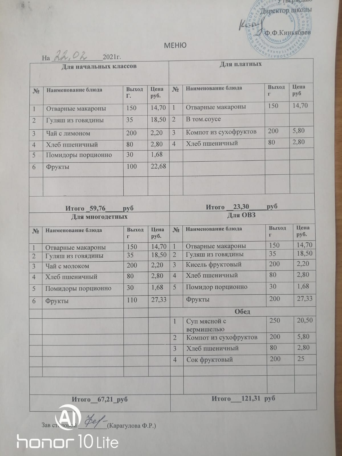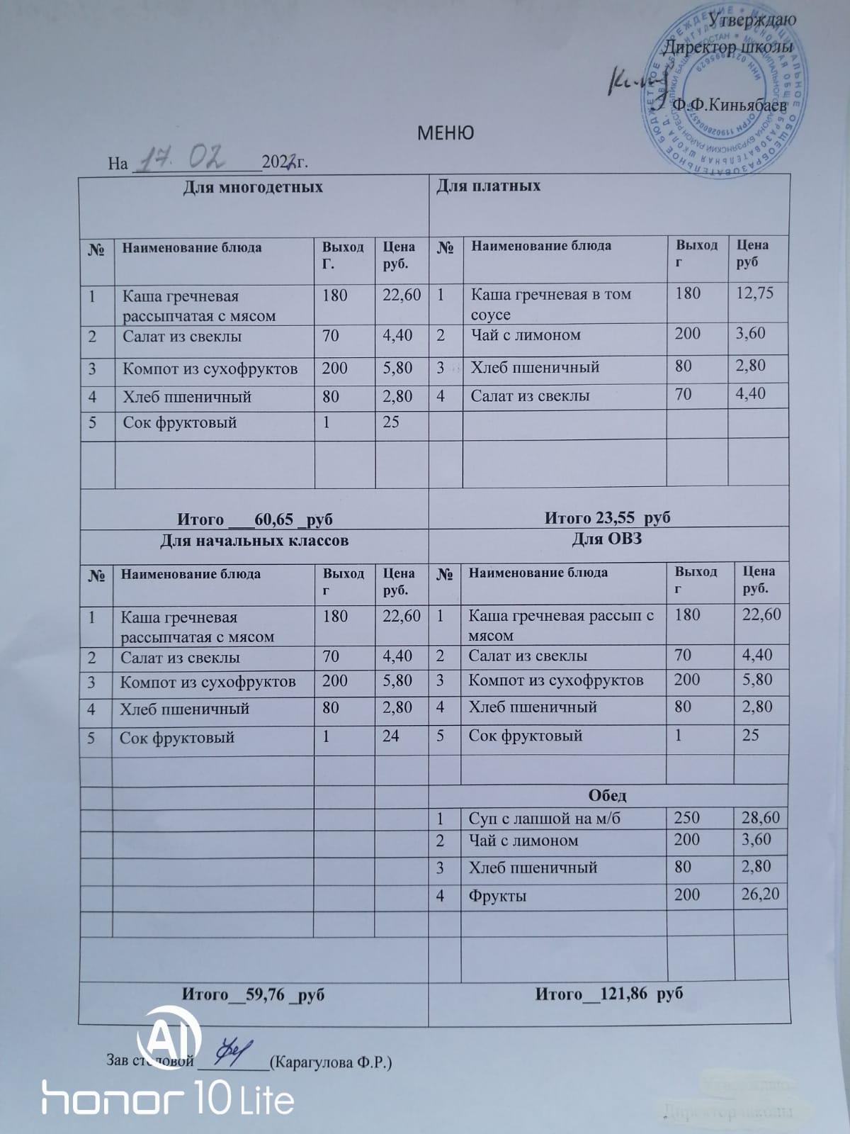 Меню детского оздоровительного лагеря 2021-2022 г.