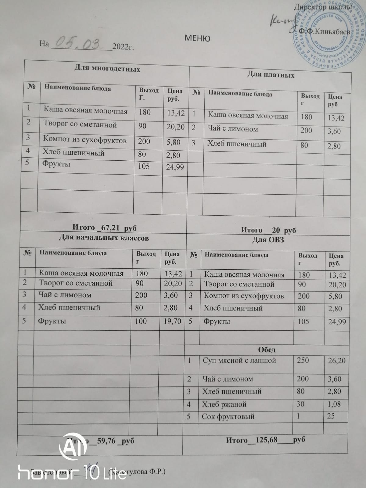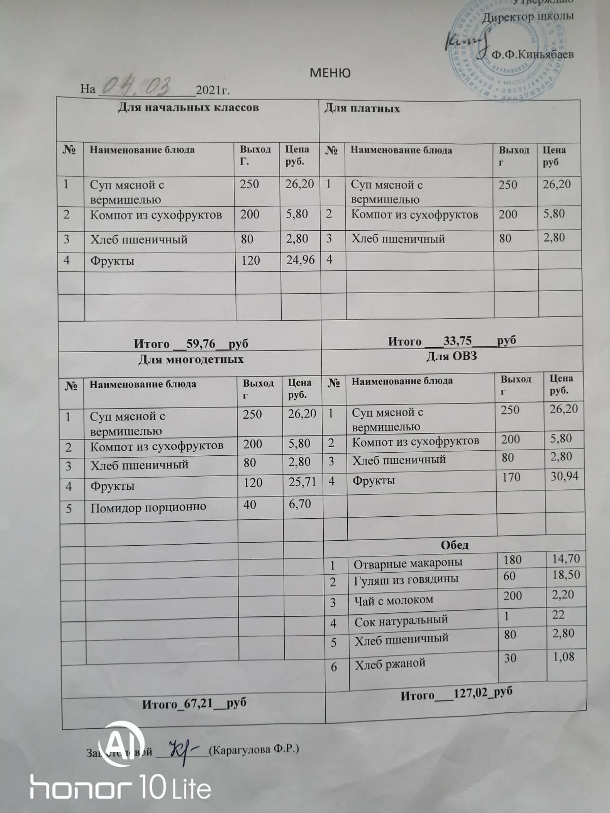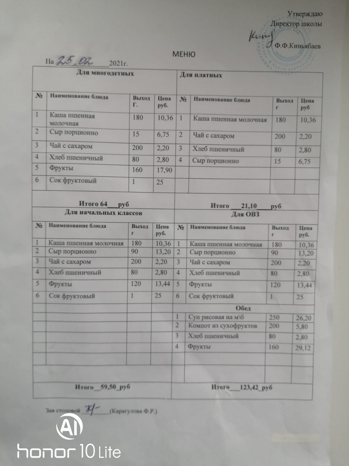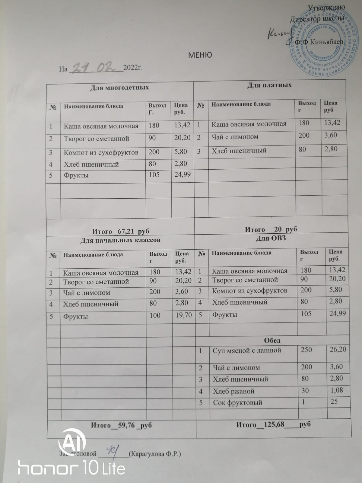 Меню детского оздоровительного лагеря 2021-2022 г.