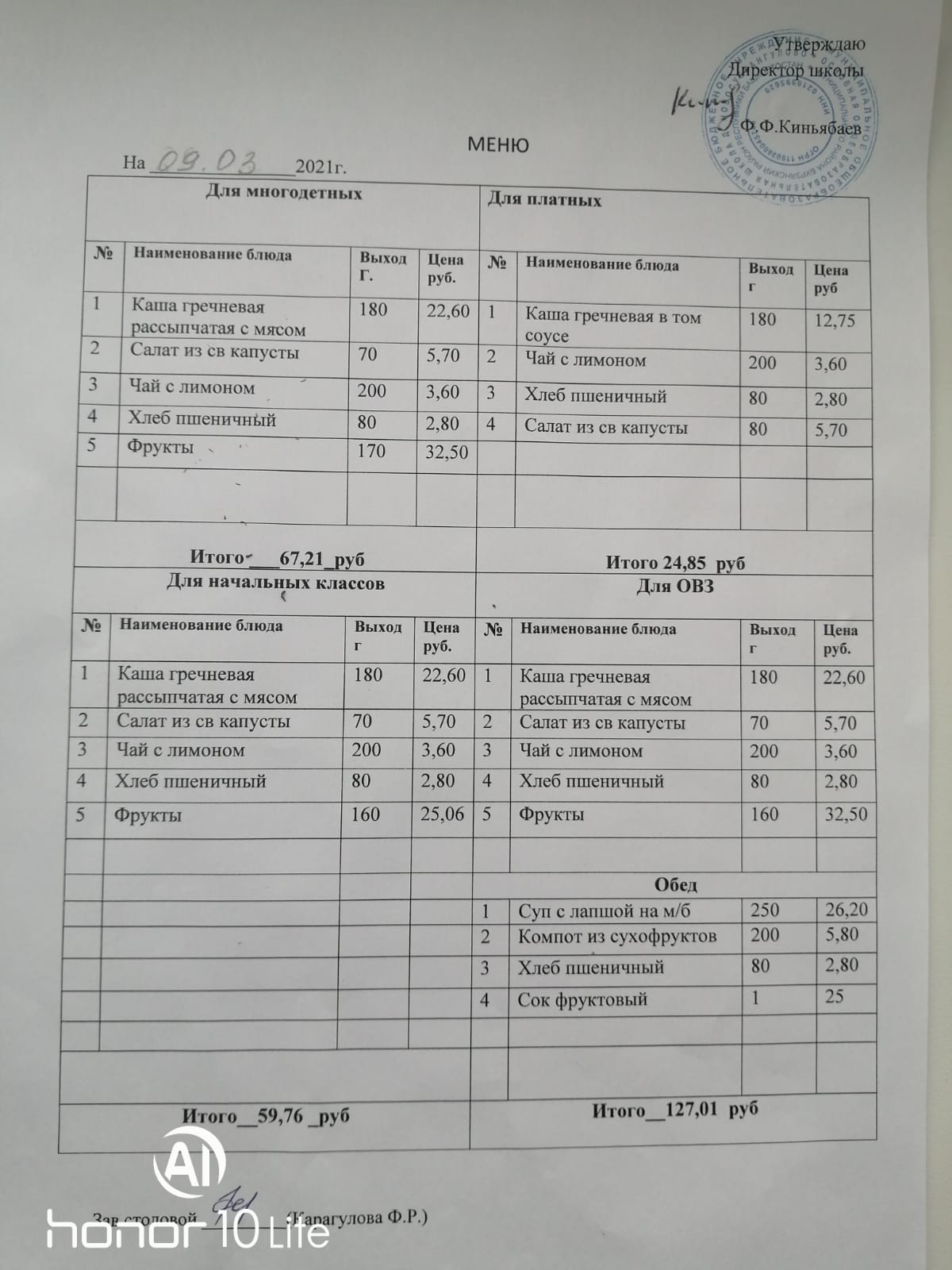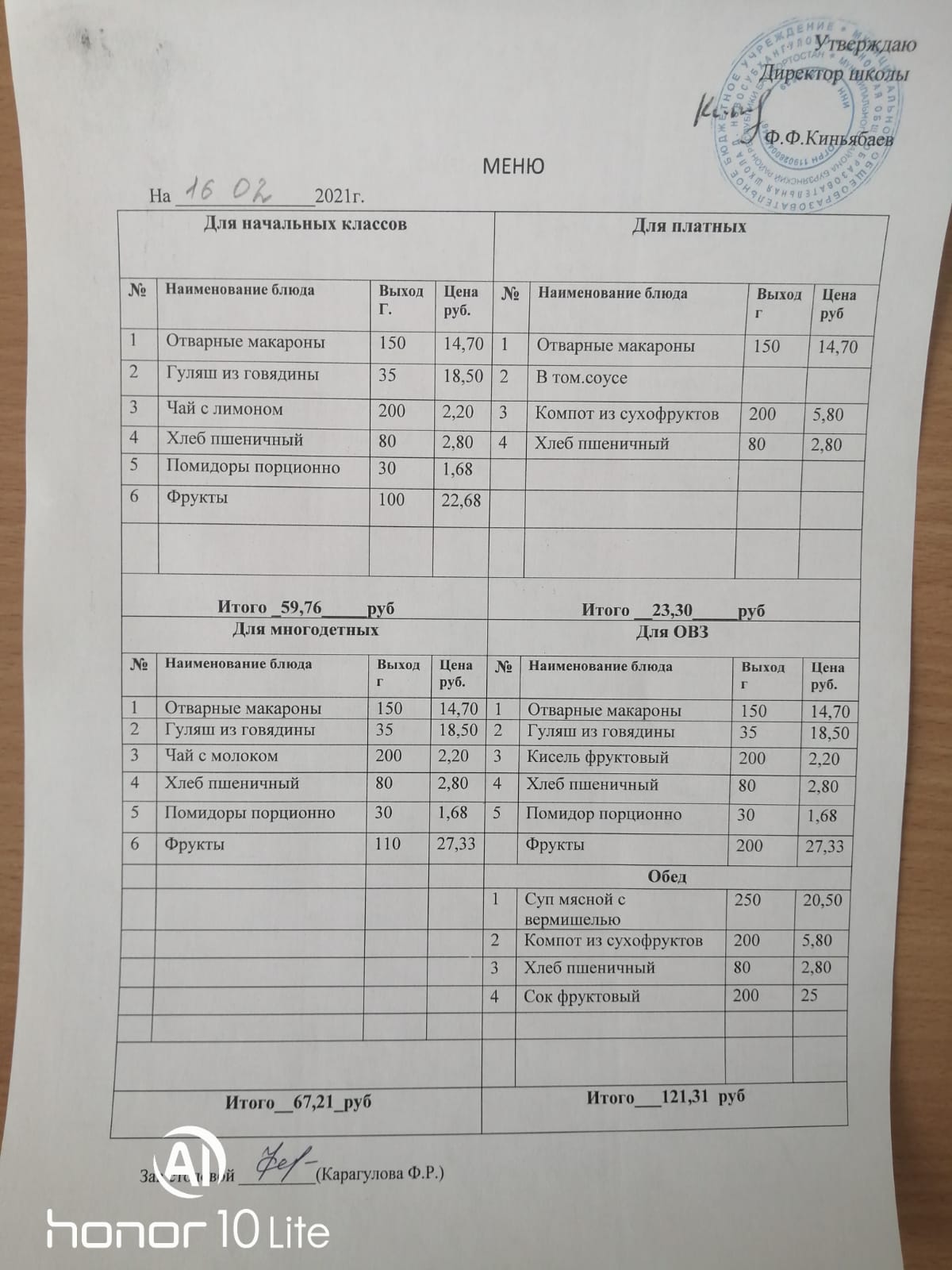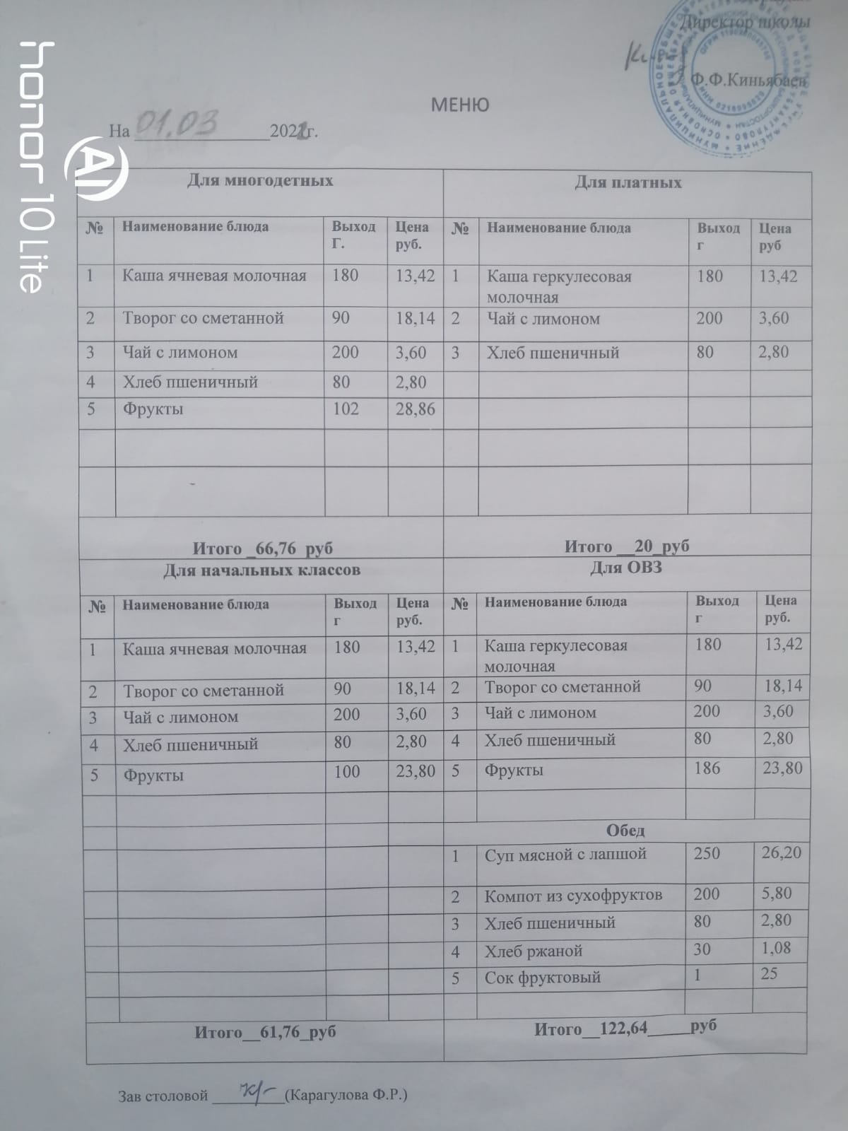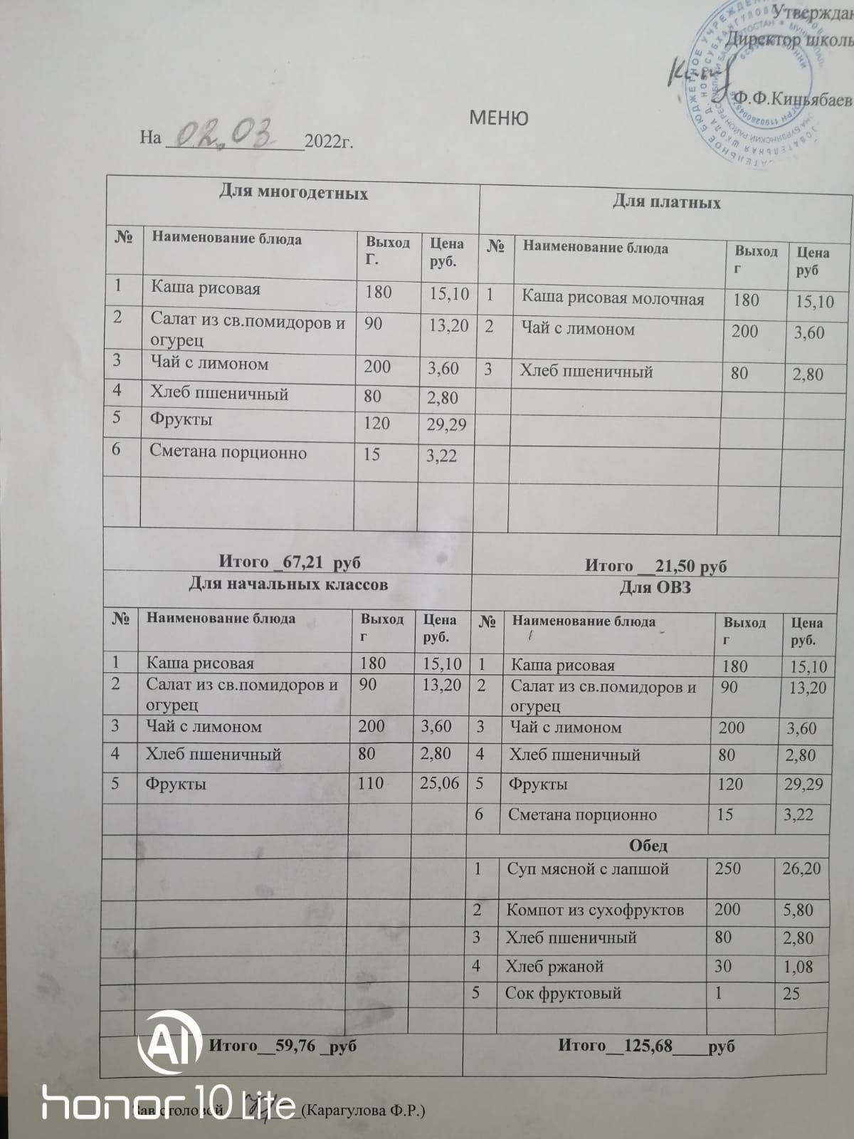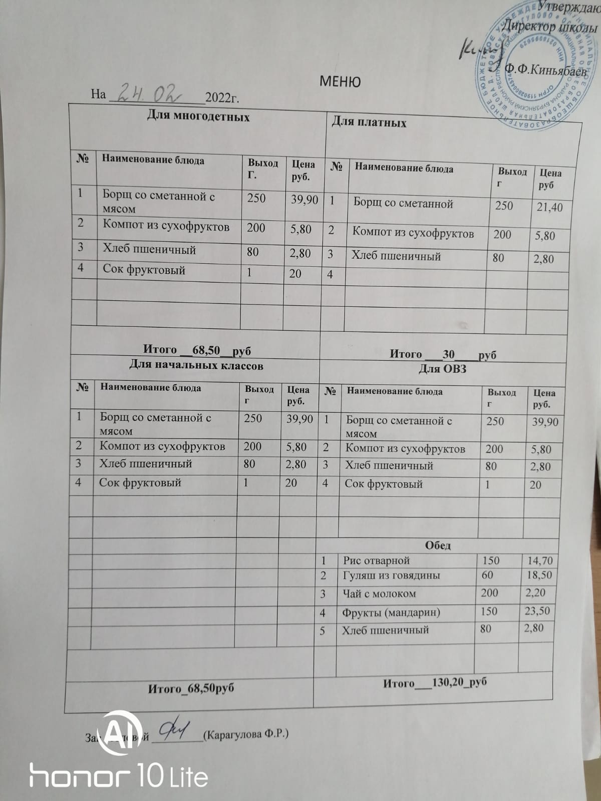 Меню детского оздоровительного лагеря 2021-2022 г.