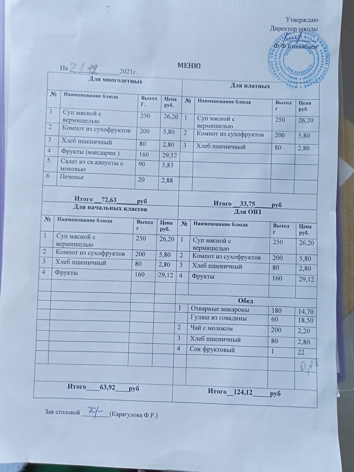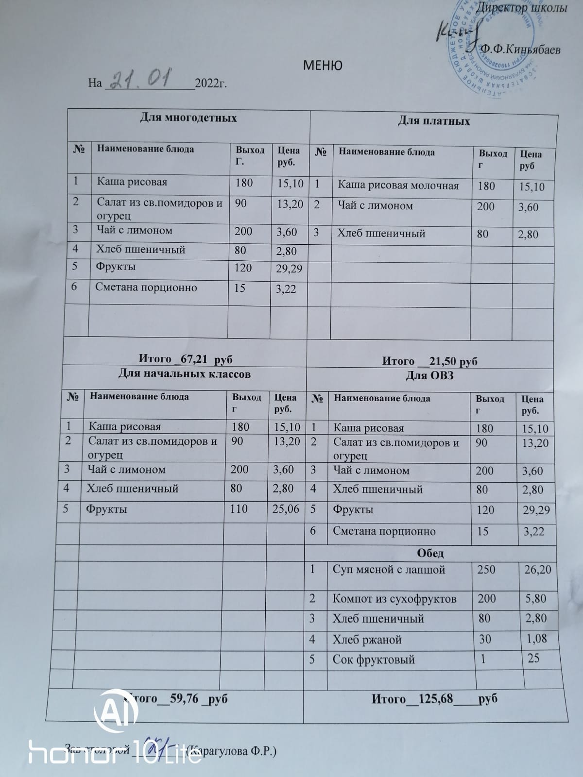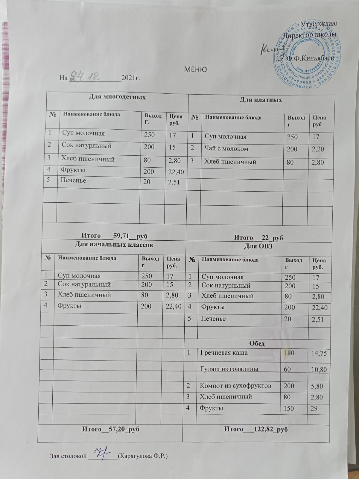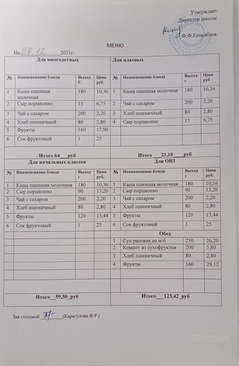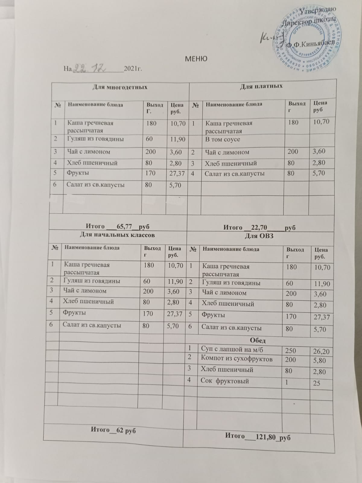 Меню детского оздоровительного лагеря 2021-2022 г.