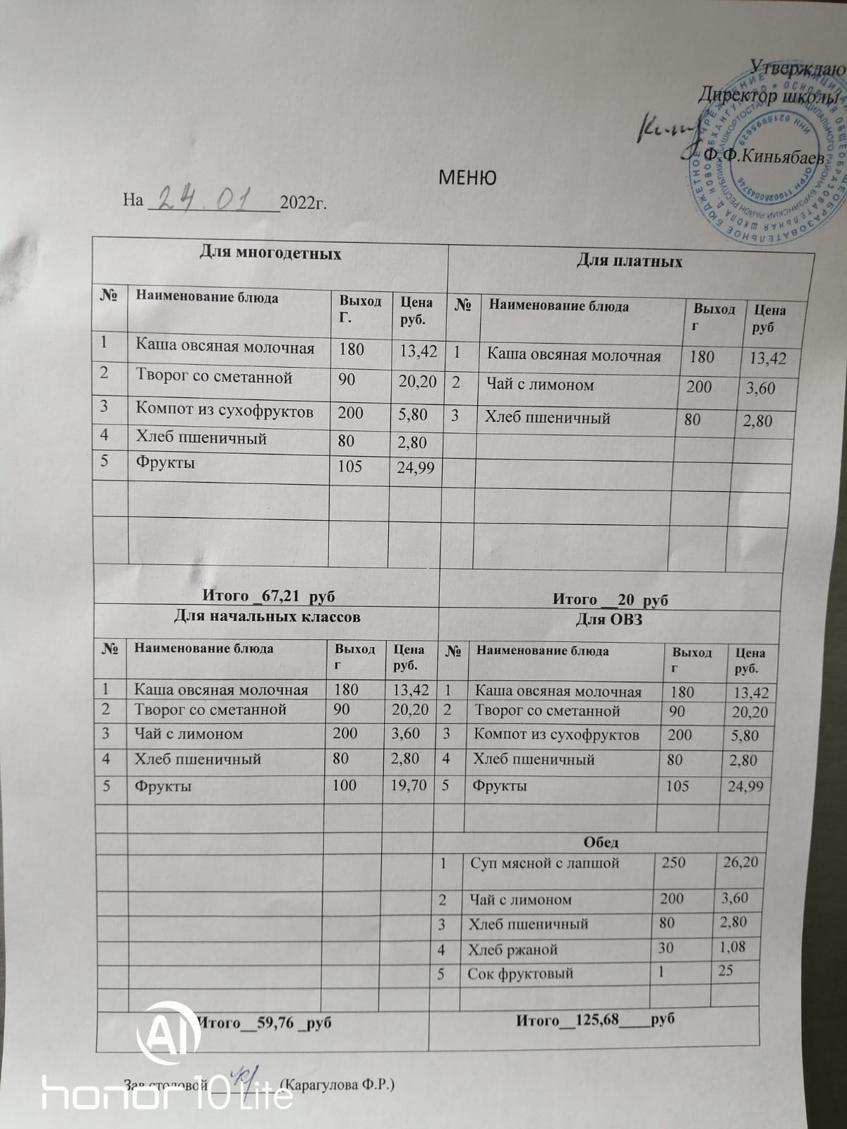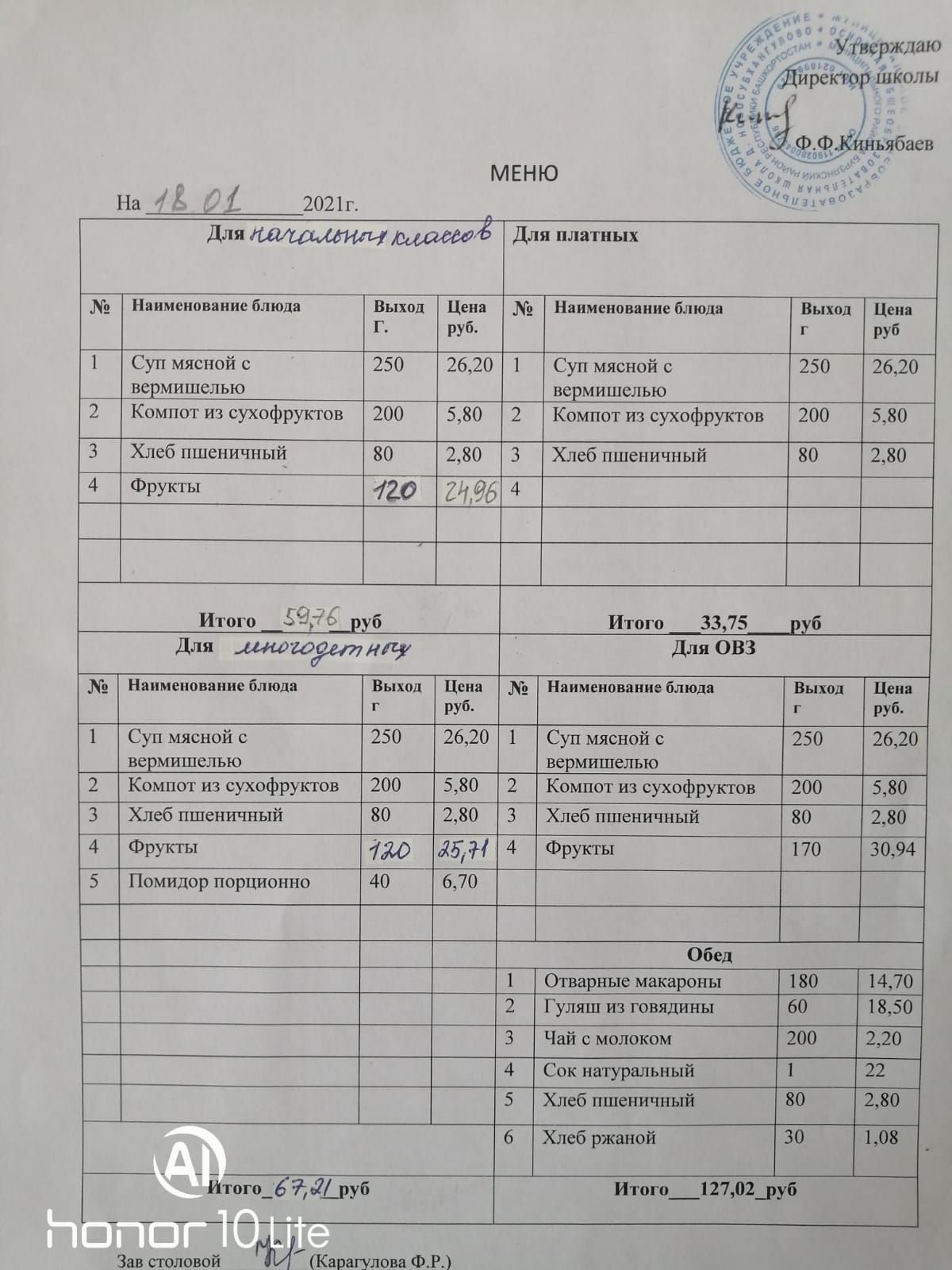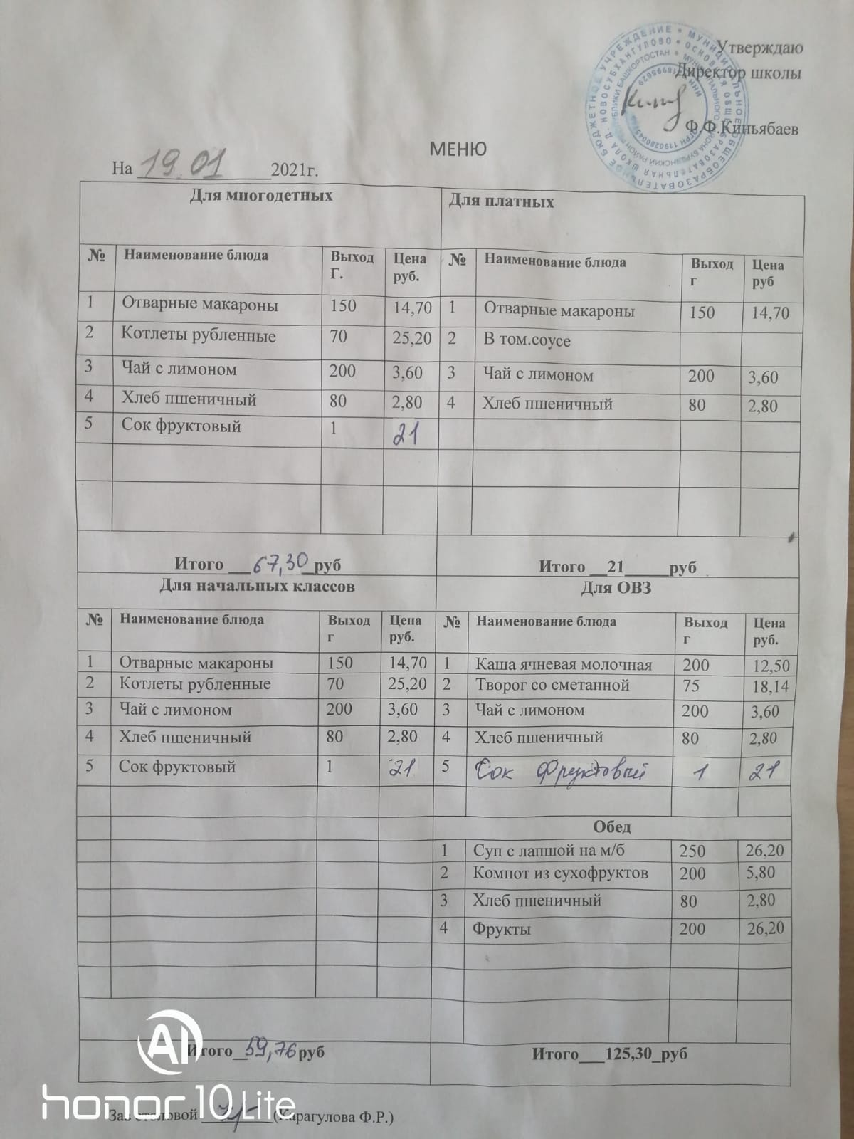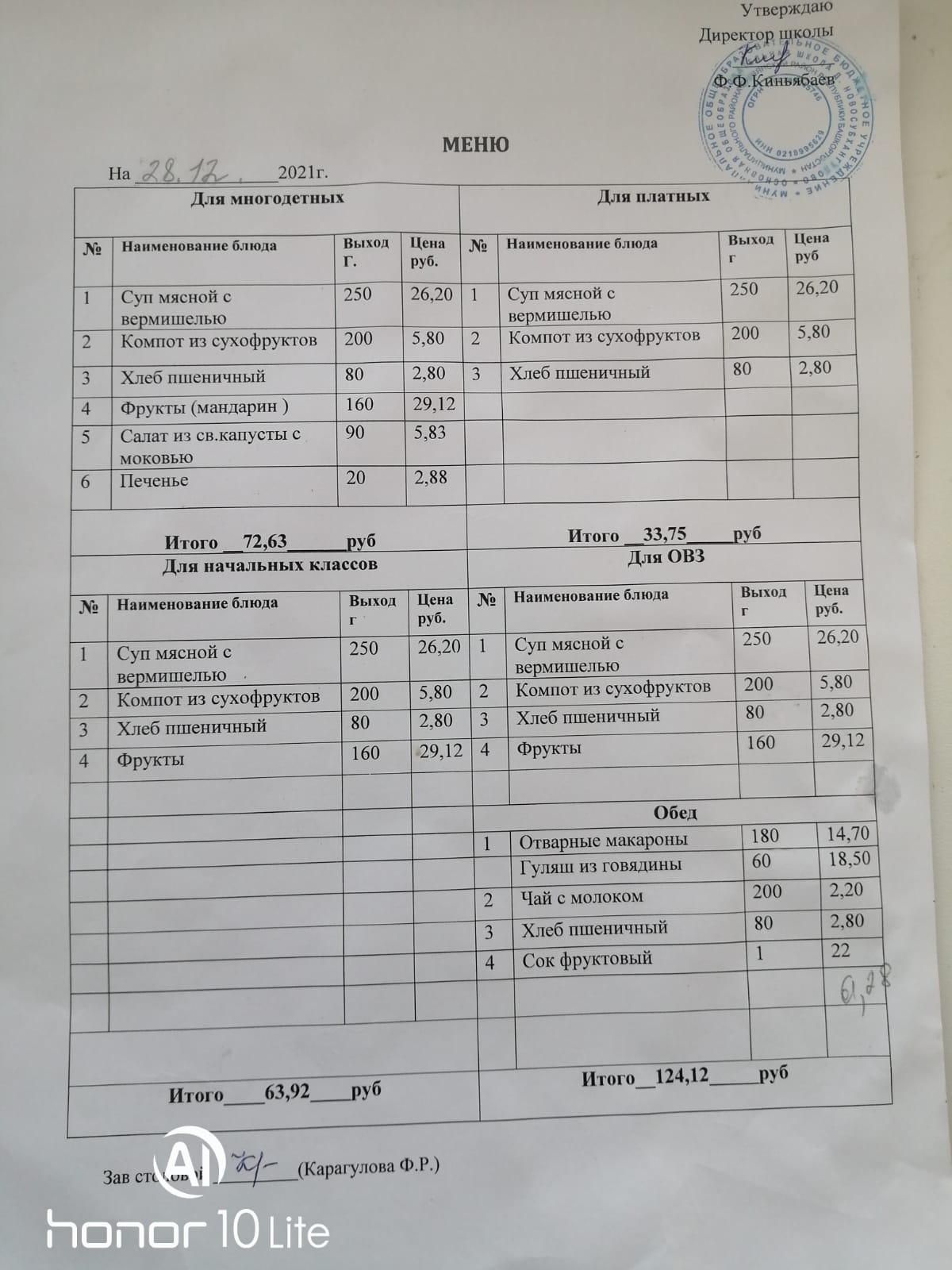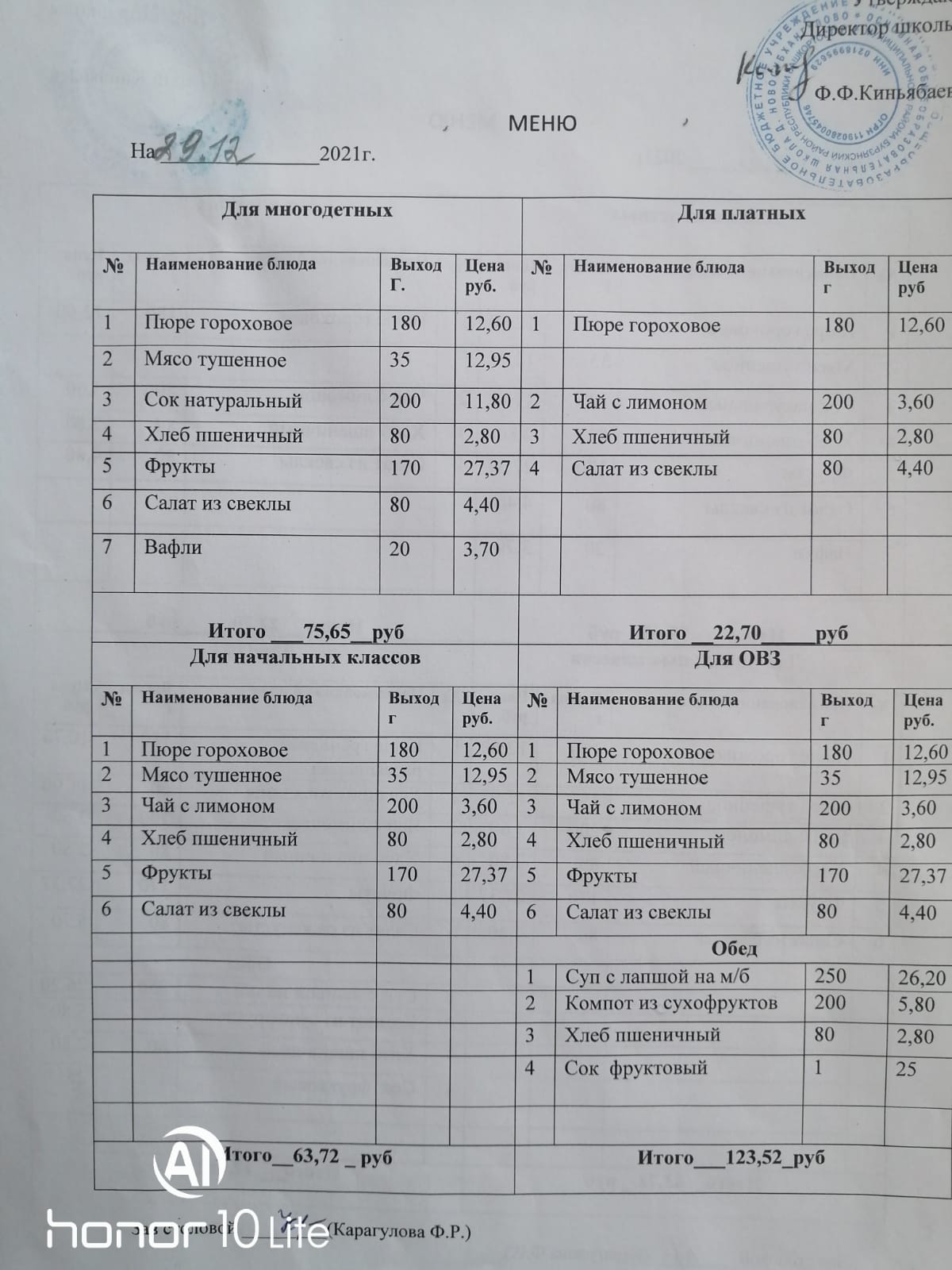 Меню детского оздоровительного лагеря 2021-2022 г.
