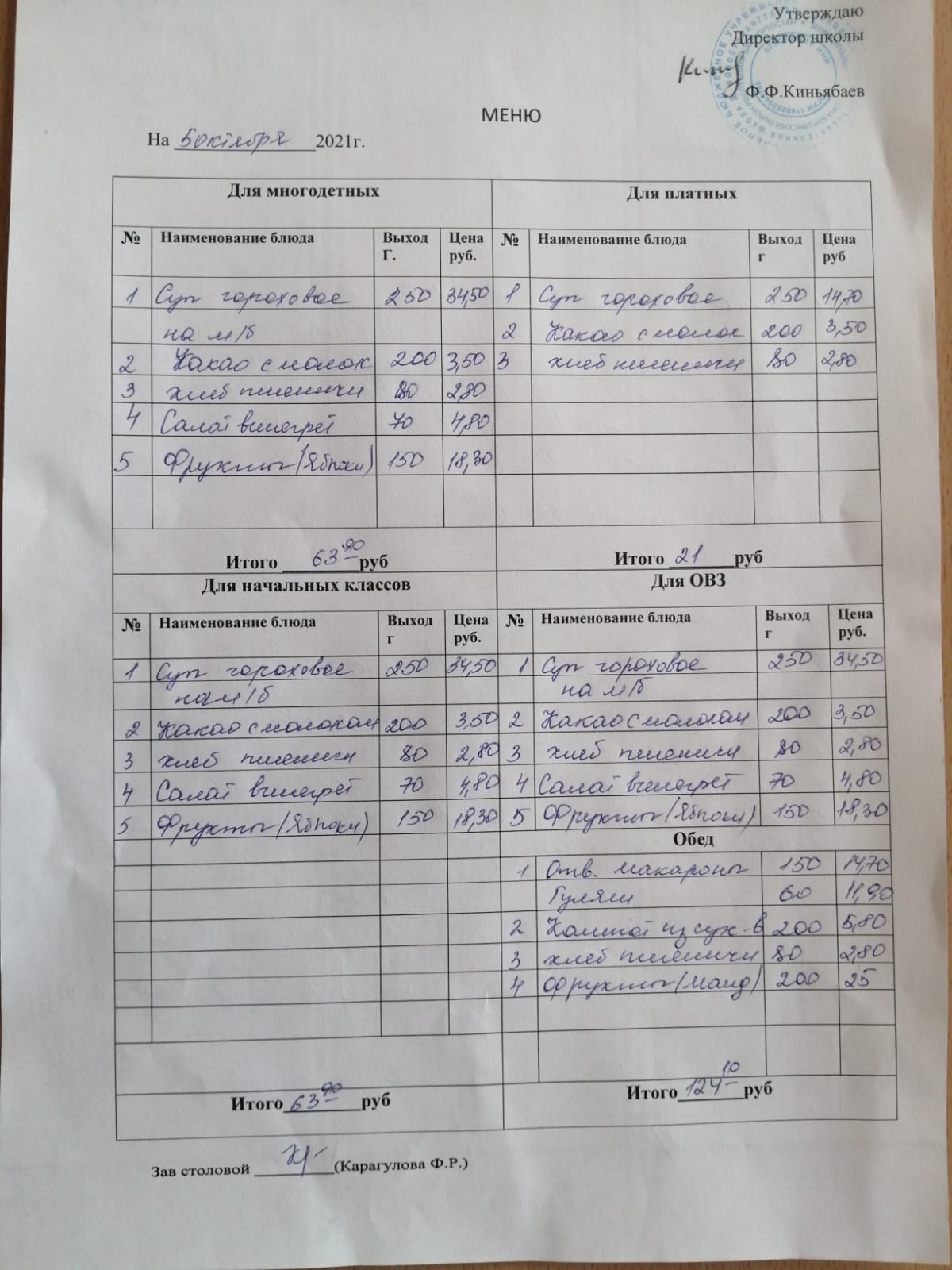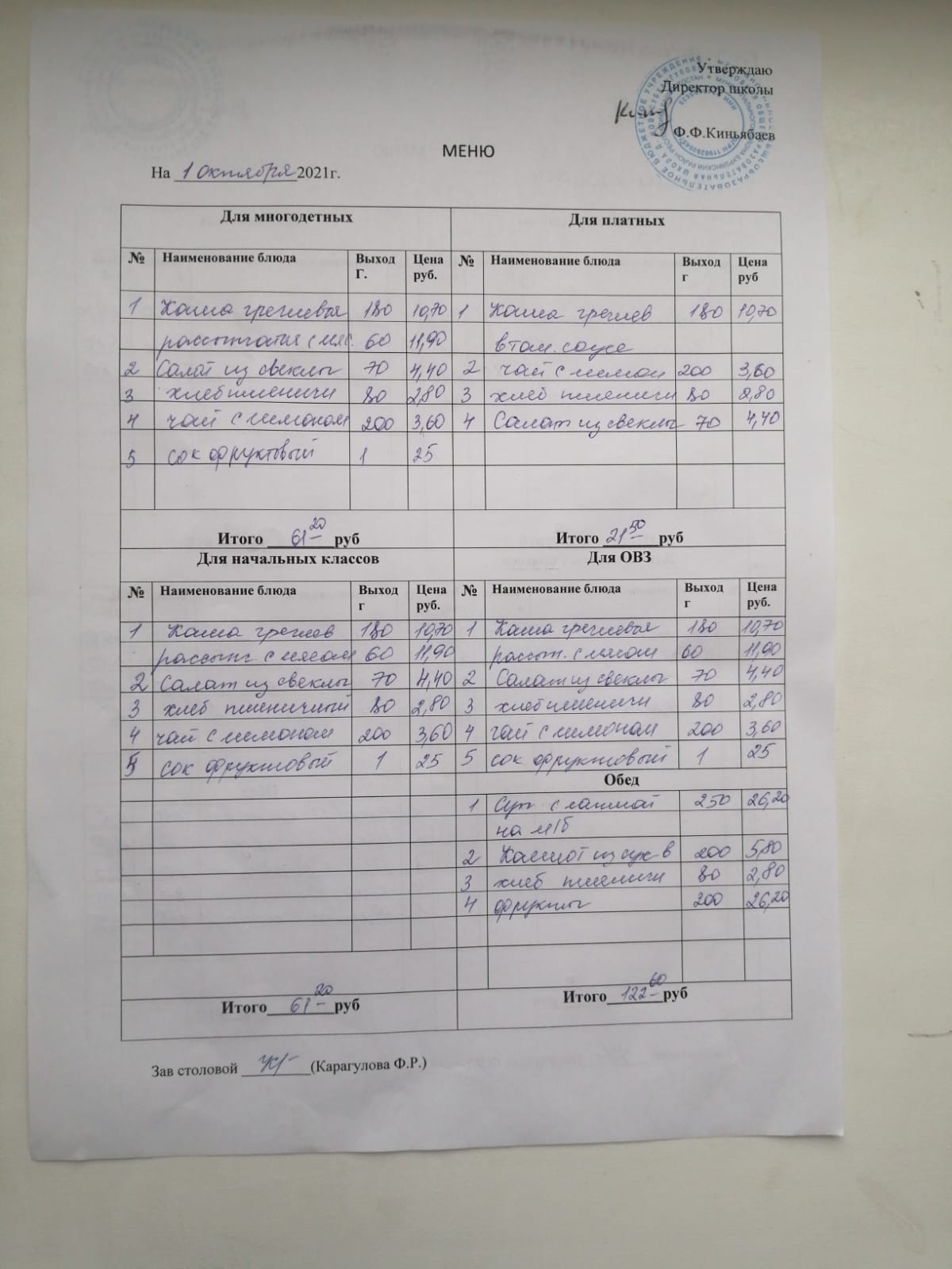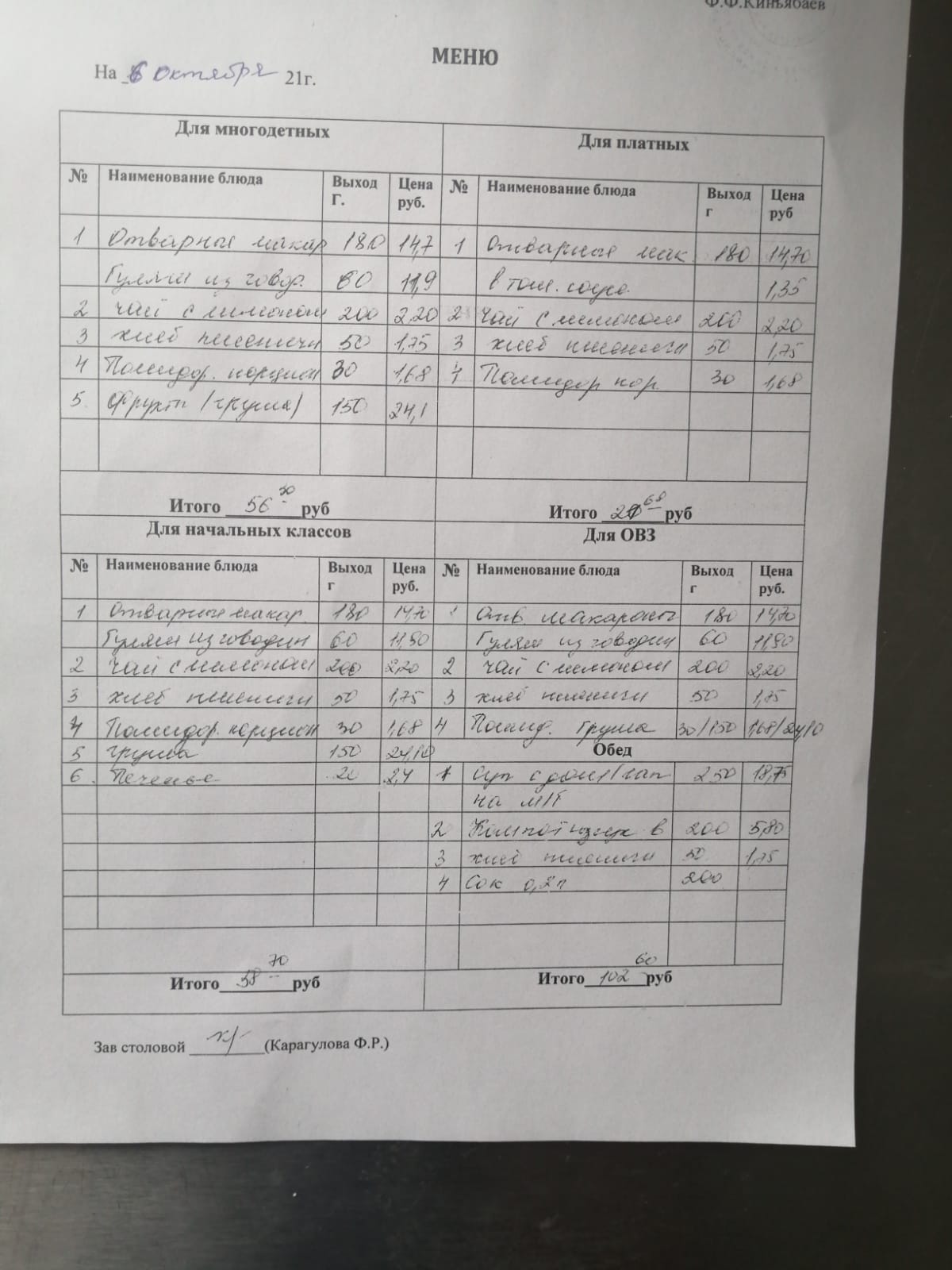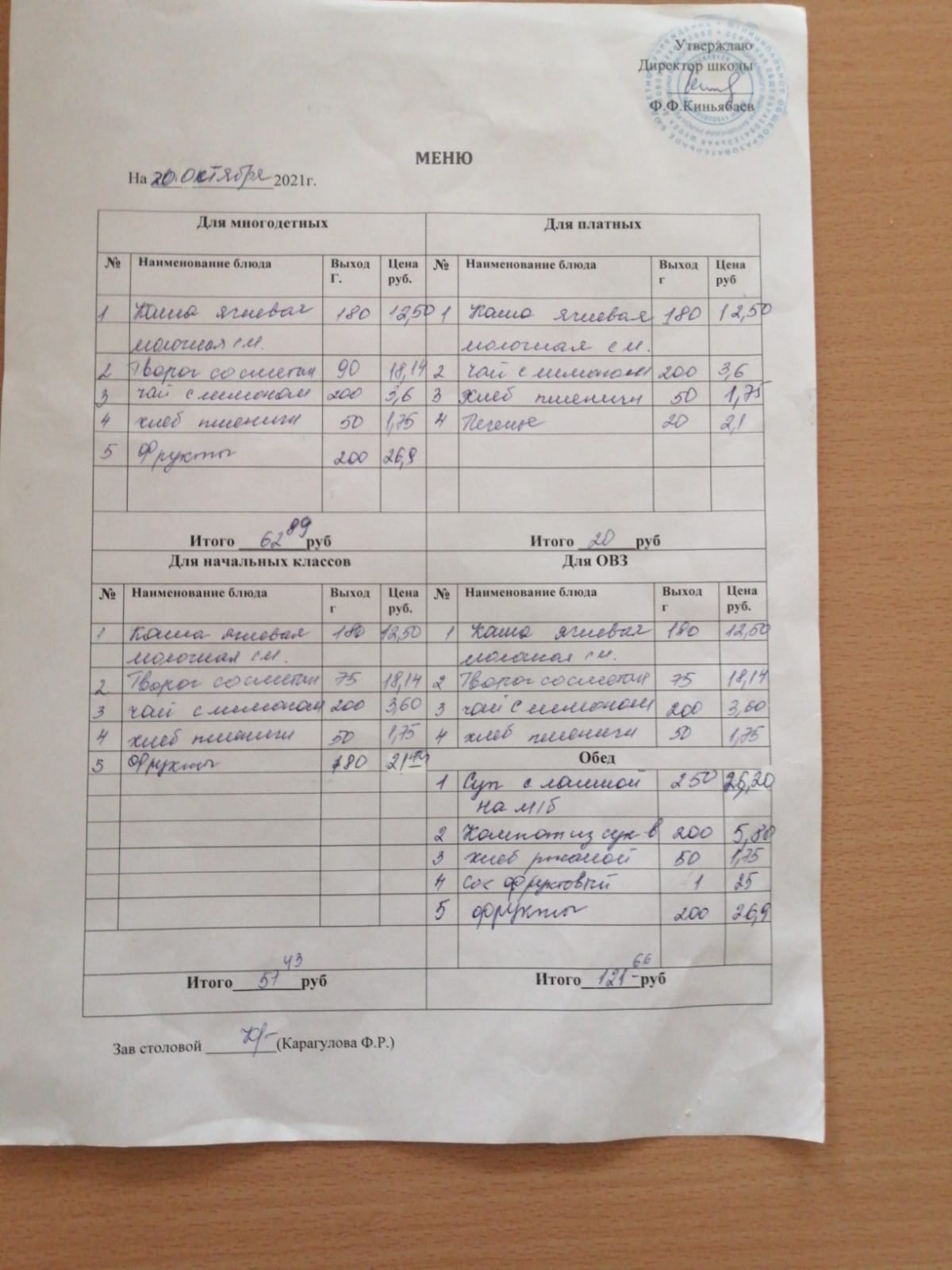 Меню детского оздоровительного лагеря 2021-2022 г.