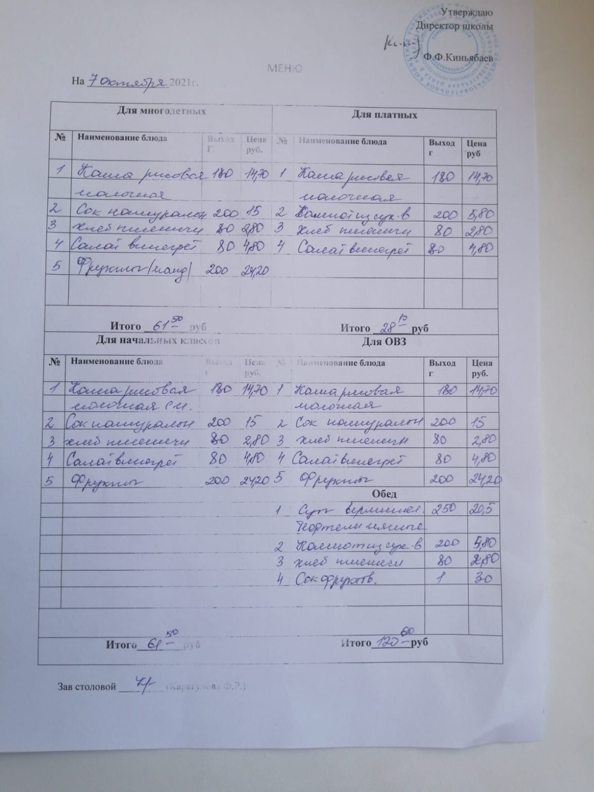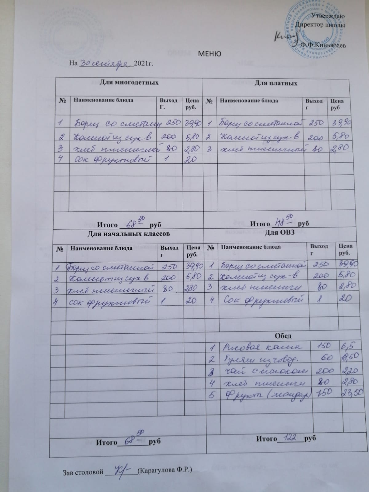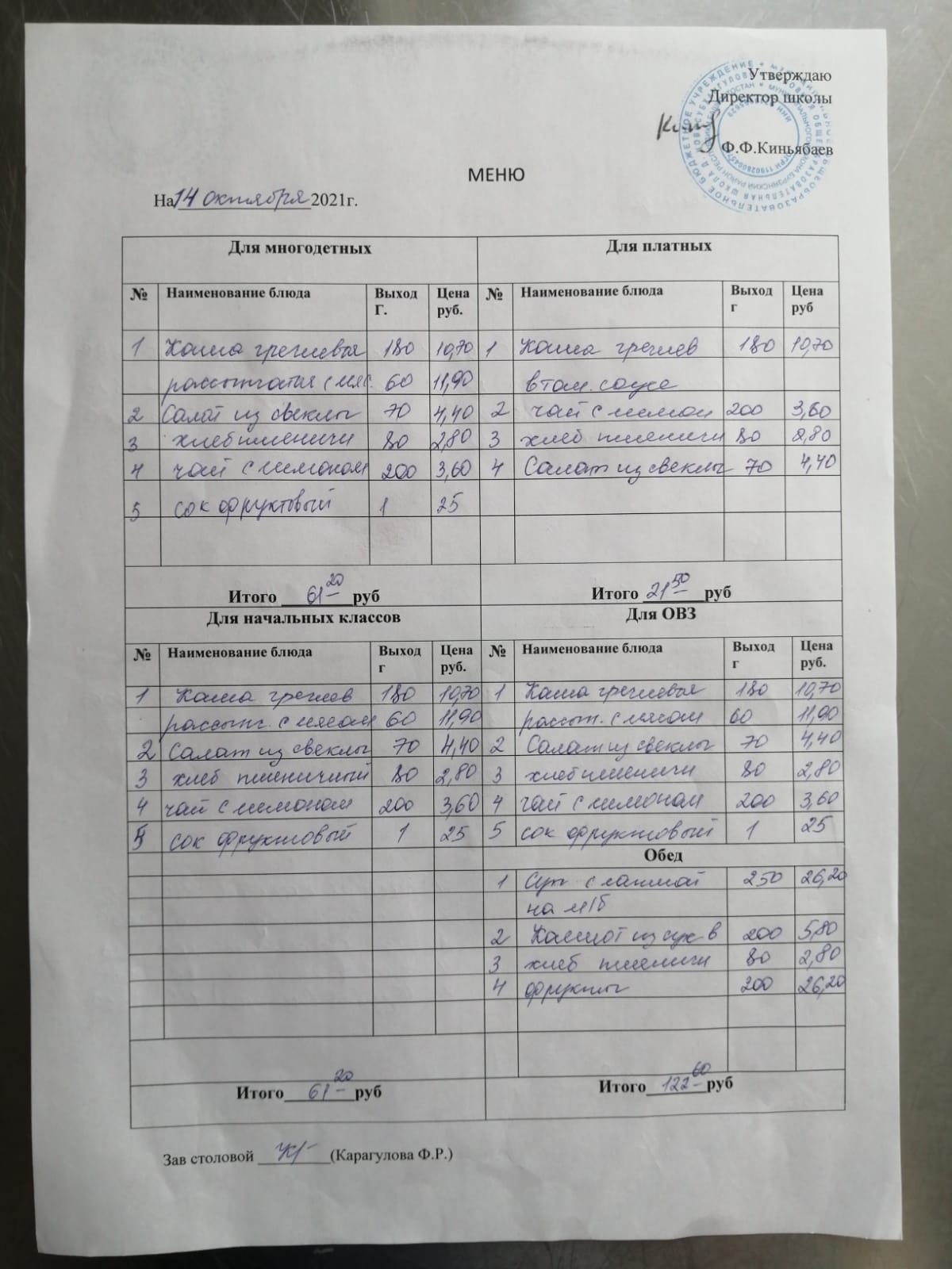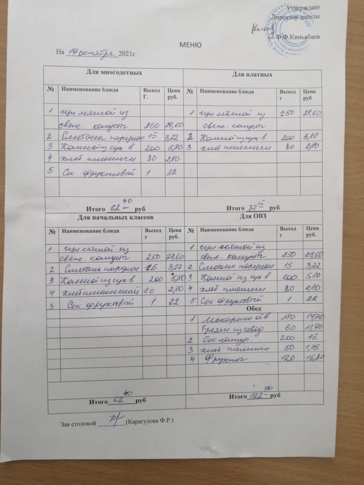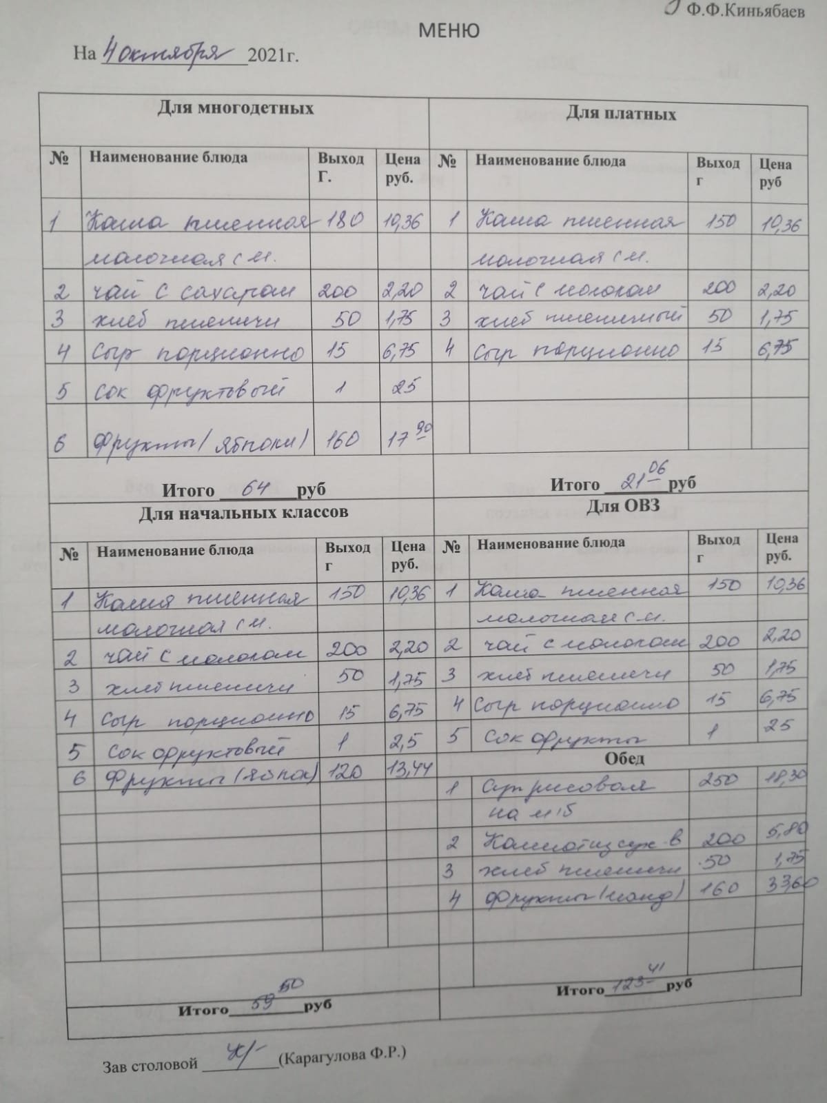 Меню детского оздоровительного лагеря 2021-2022 г.