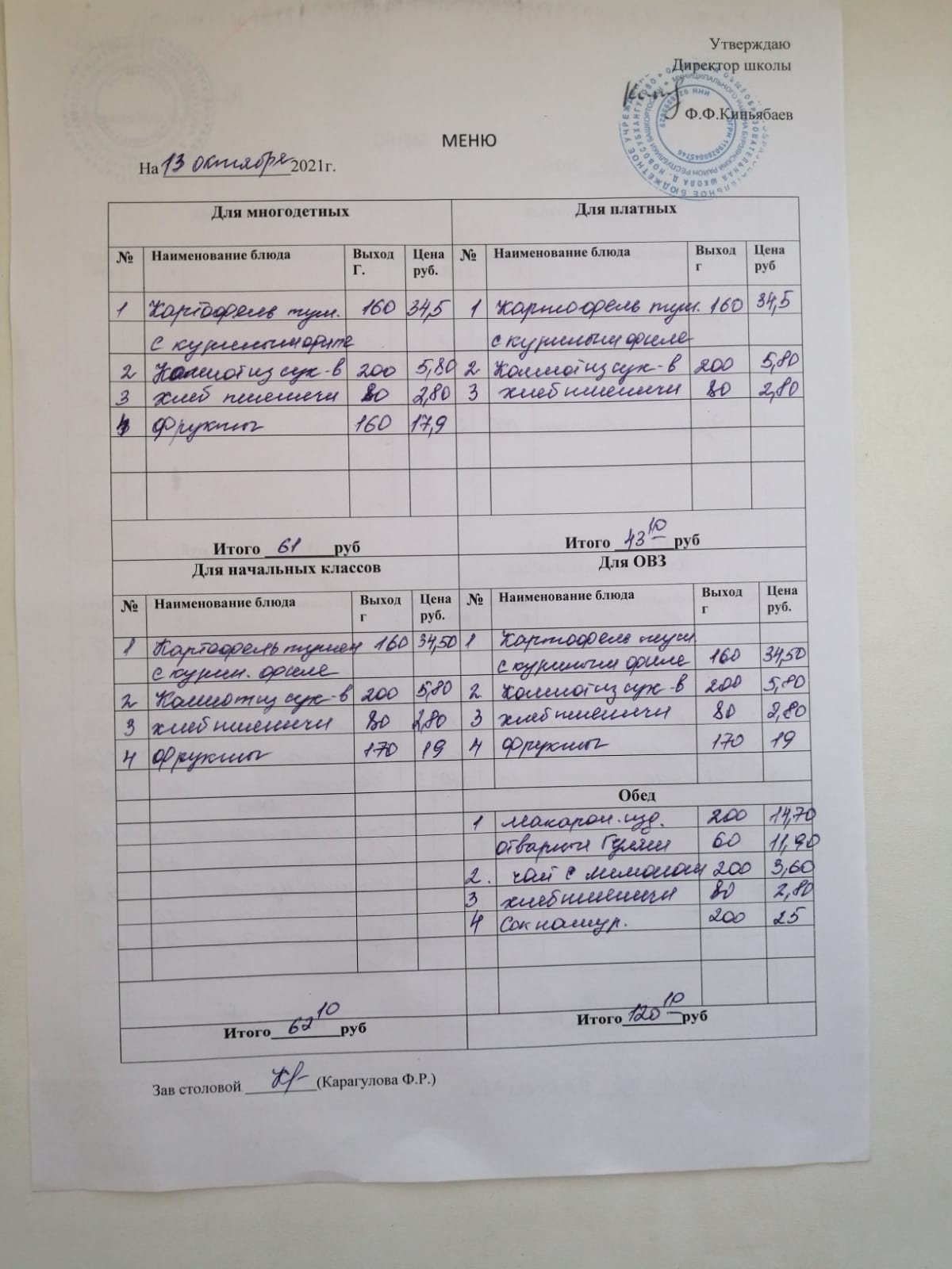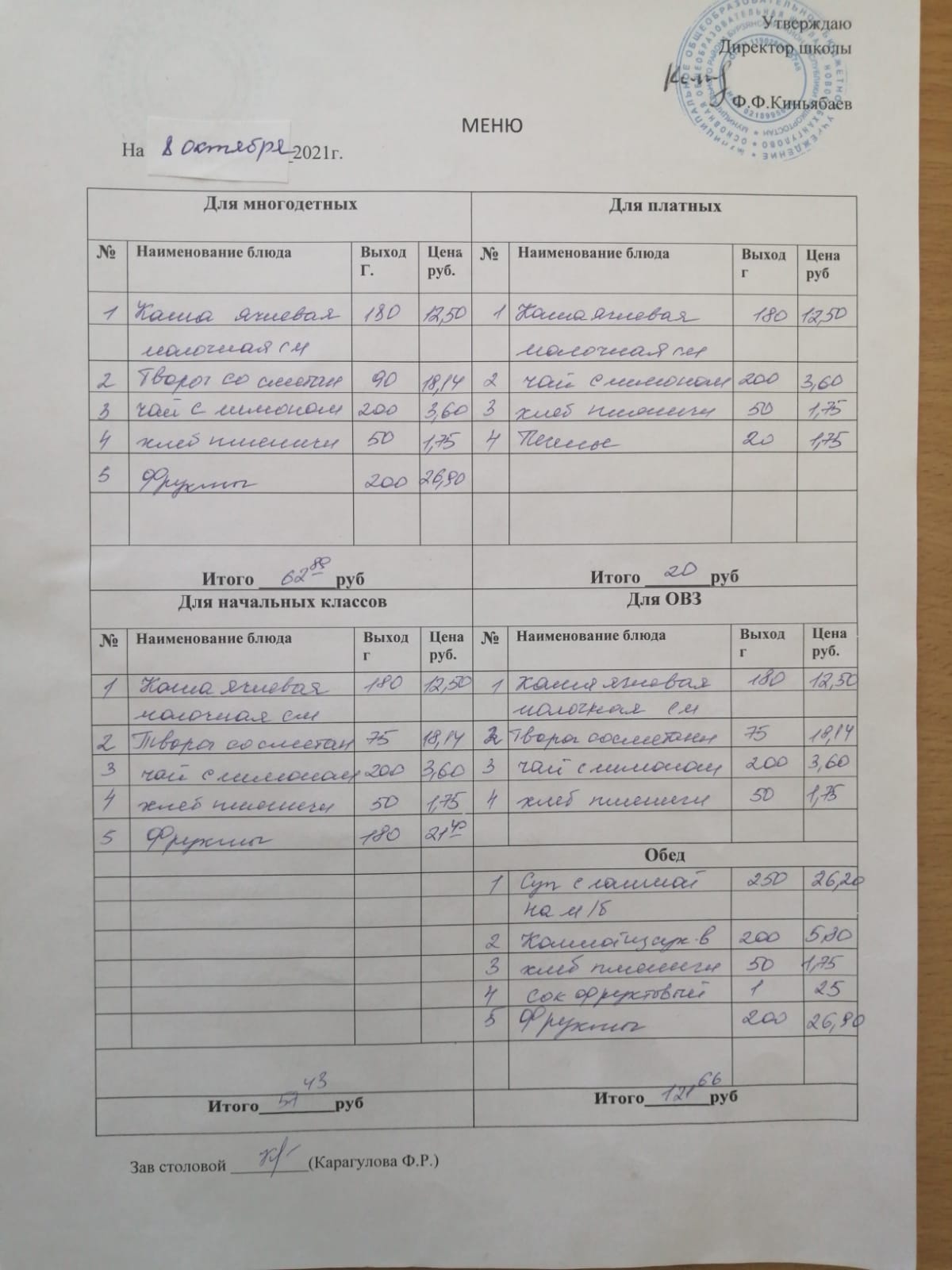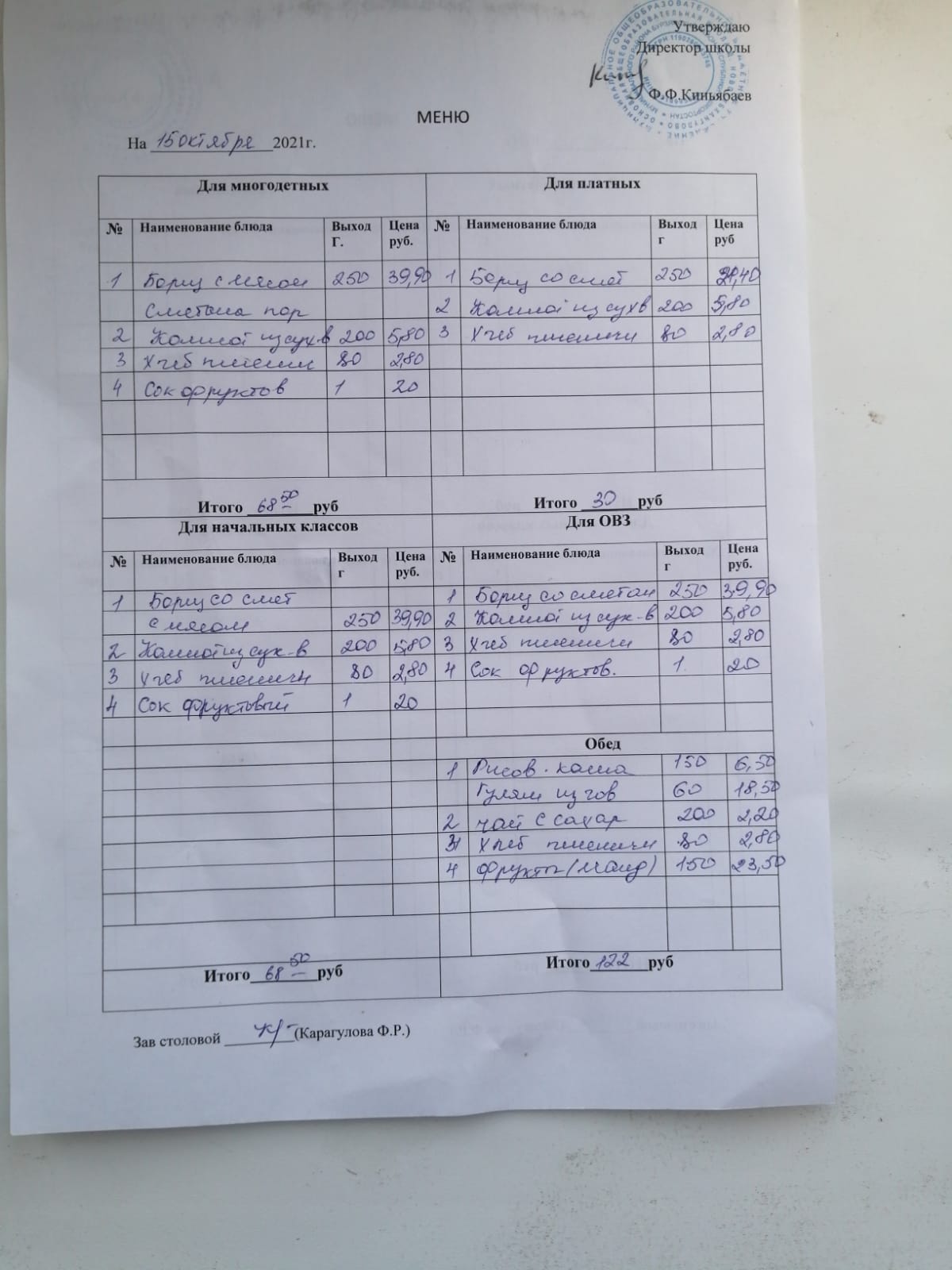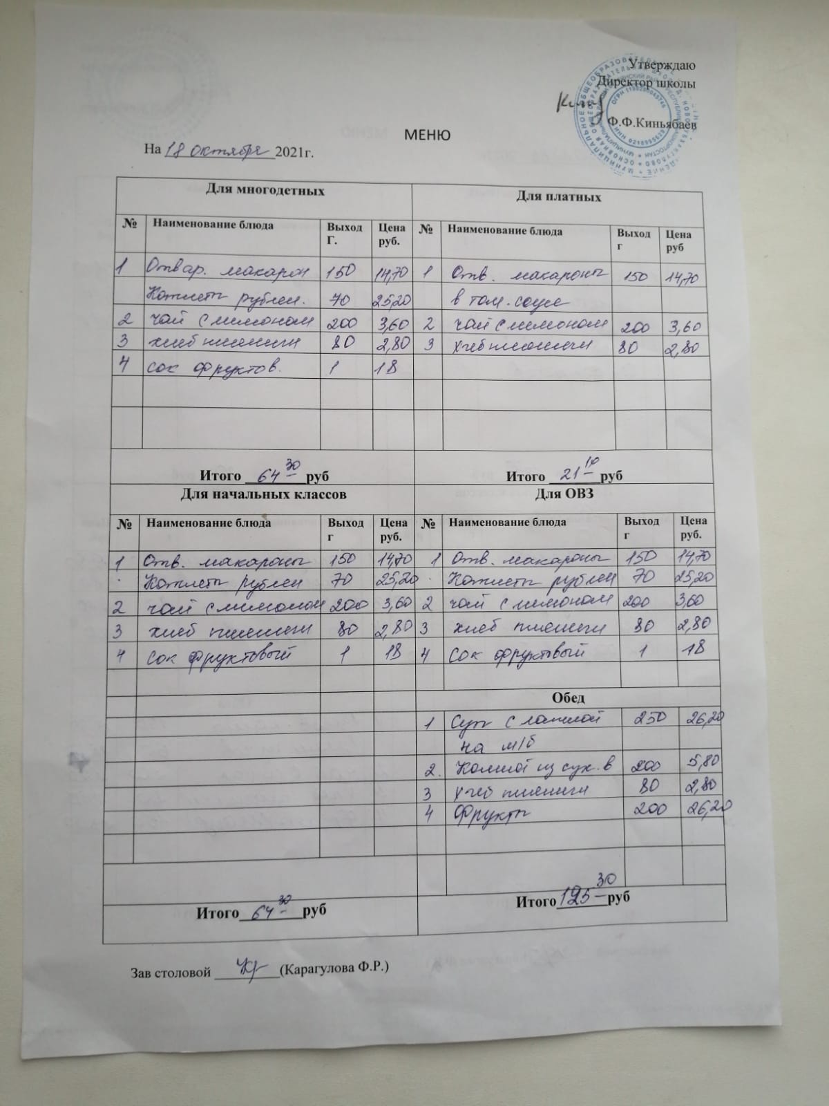 Меню детского оздоровительного лагеря 2021-2022 г.